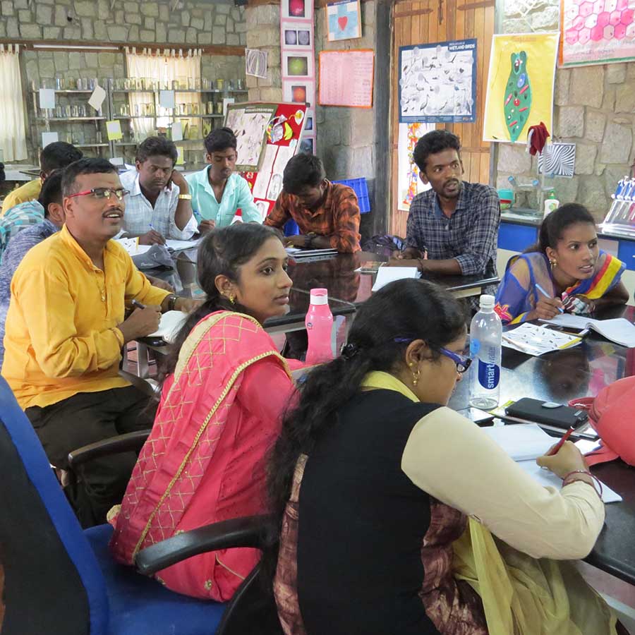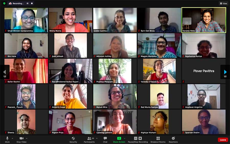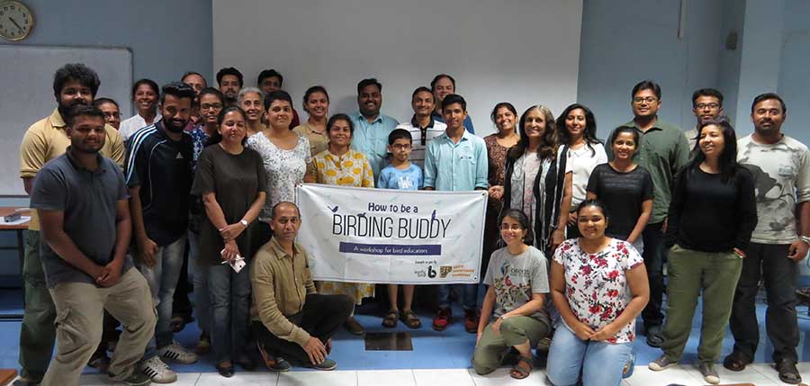 In these workshops, we discuss the basic skills required to take birds to children, we also provide the material (print and digital) and tools that go with it. These workshops have taken place in several Indian cities as collaborations, to meet the emerging needs of local groups who help with logistical support and gather interested participants. Birding Buddy sessions are highly interactive and hands-on, a dynamic mix of instructional sessions, games and creative activities as live demonstrations for the educators to directly apply in their sessions back home. We have also facilitated specific workshops for school teachers, some of which ensued as synergies with other organizations such as Azim Premji Foundation, Agastya Foundation and Aakanksha Foundation. Here are some glimpses of our workshops conducted over the last few years.
