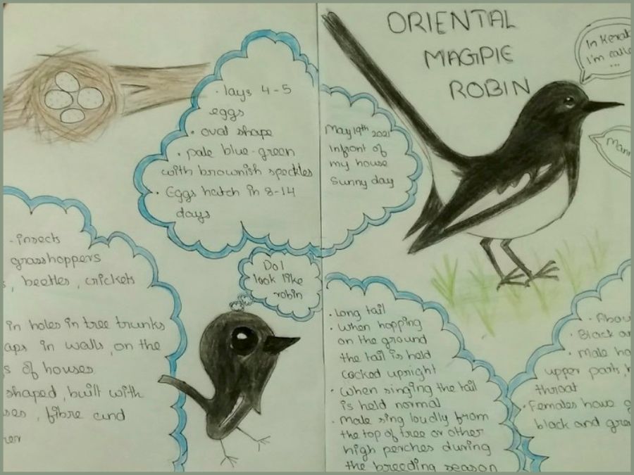 Over five weeks, we explored different themes related to birds, introducing a new theme each week. These were – nature journaling, habitat, migration, bird behaviour and citizen science. Participants were engaged with a combination of multimedia, guided interactions, lively discussions and activities via online sessions. The weekly sessions were facilitated online on consecutive Sundays, each accompanied by an illustrated activity sheet that not only recapped the learnings about the chosen theme, but also shared new activities they could pursue on their own.